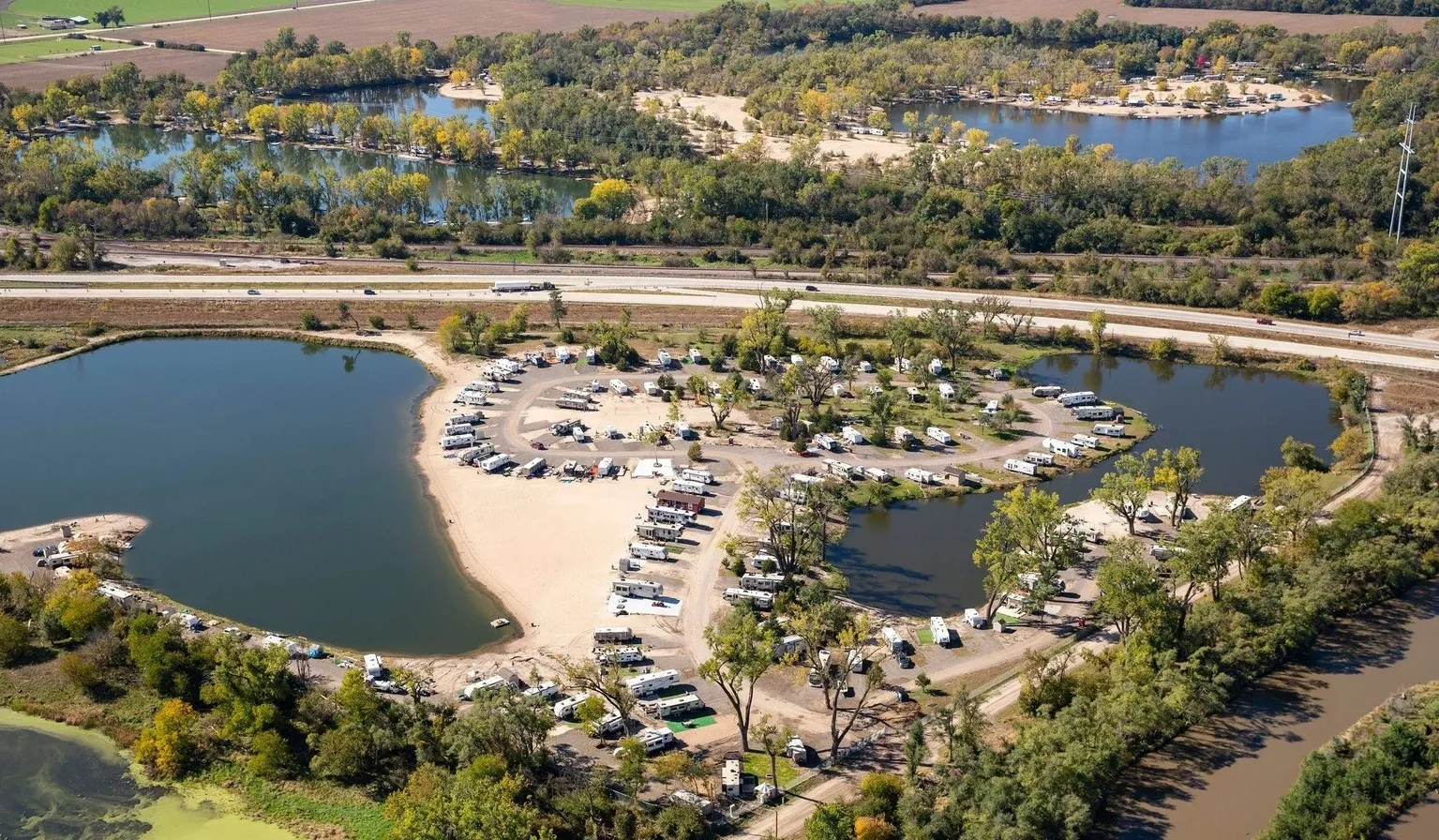 We are situated just south of Bellevue in Plattsmouth, Nebraska. Merritt Beach RV Park is a gated access RV Campground. We have 125 Permanent pad sites with water and electrical hook ups for the ultimate staycation. With a swimming lake and a fully stocked fishing lake, Merritt Beach is the perfect place to create lasting memories!